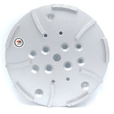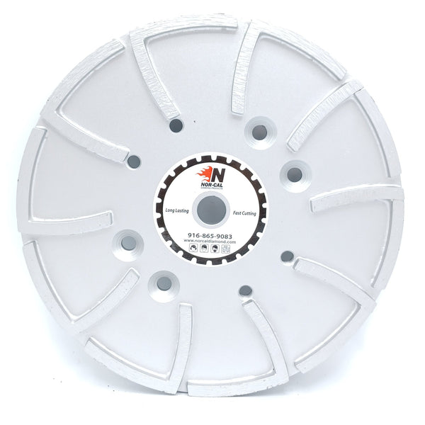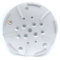 10 pulgadas de diámetro con segmentos estilo turbo para un pulido rápido y suave. Muele y alisa losas/pisos de concreto y elimina revestimientos de concreto, incluidas resinas y epoxis.
