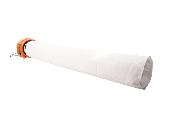 16 inch nominal diameter x 9.8 foot bag length with integral attachment strap.