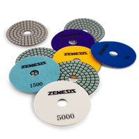 Grit: 30 (Purple), 50 (Dark Blue), 100 (Yellow), 200 (Orange), 400 (Red), 800 (Green), 1500 (Light Blue), 3000 (Brown), 5000 (White)Diameter: 4"Arbor Size: 5/8"Dry Application : Natural Stone, Porcelain, Quartzite, Glass Tile